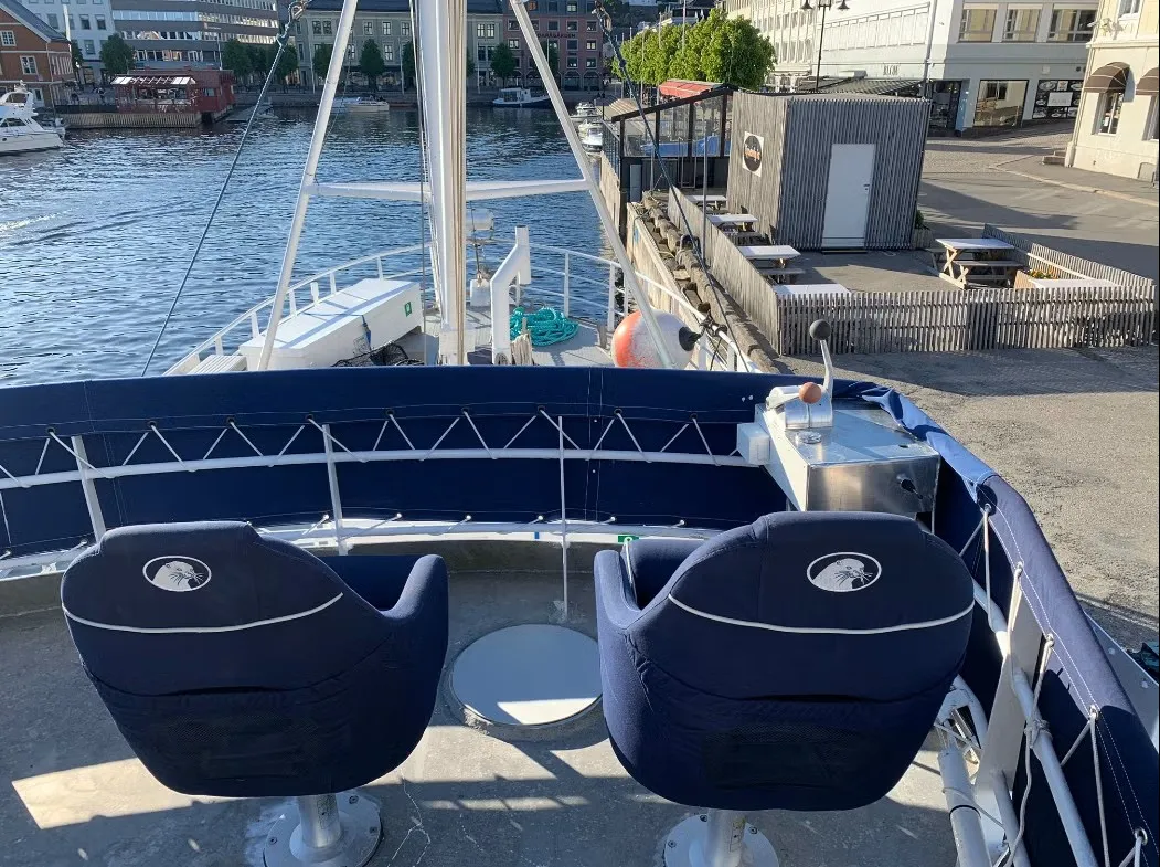 Innredningen er funksjonell og romslig, med gode oppholdsarealer, sitteplass til inntil 12 passasjerer og inntil 7 soveplasser, noe som gjør fartøyet velegnet for tur- og opplevelsesvirksomhet, charter, representasjon eller privat bruk. Løsningene om bord er praktiske og gjennomtenkte, og tilpasset lengre opphold.