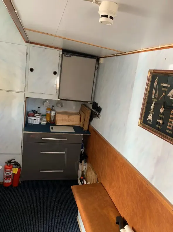 Fartøyet har en romslig salong/messe med tilhørende bysse, tilrettelagt for både sosialt samvær og lengre opphold om bord. Det er installert vakuumtoalett og dusj, samt to lugarer på hoveddekk. I tillegg finnes lugar nede forut med tre køyeplasser (90 cm køyer).