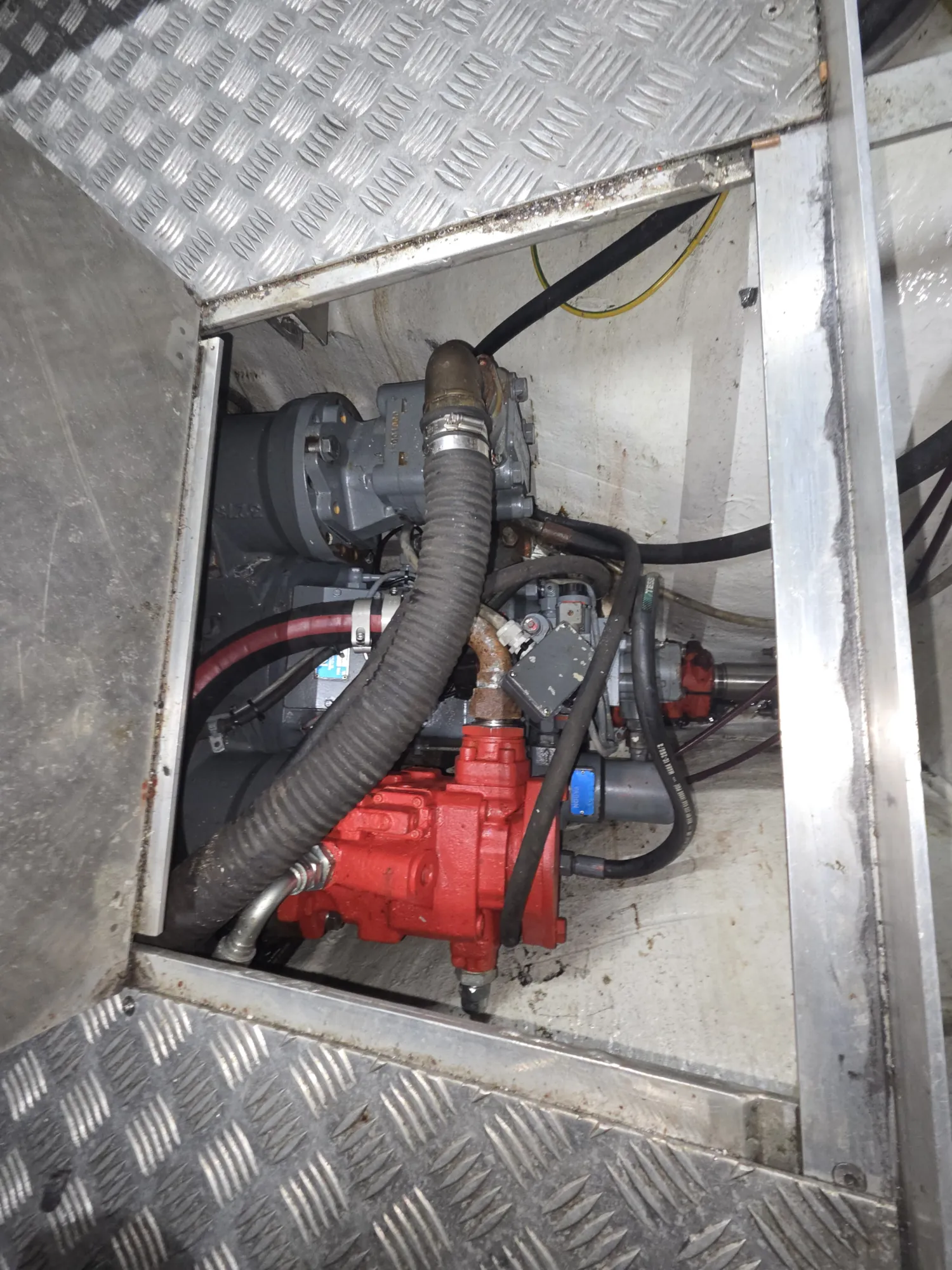 Hydraulikksystem: 70 liter fast pumpe + 90 liter variabel pumpe.