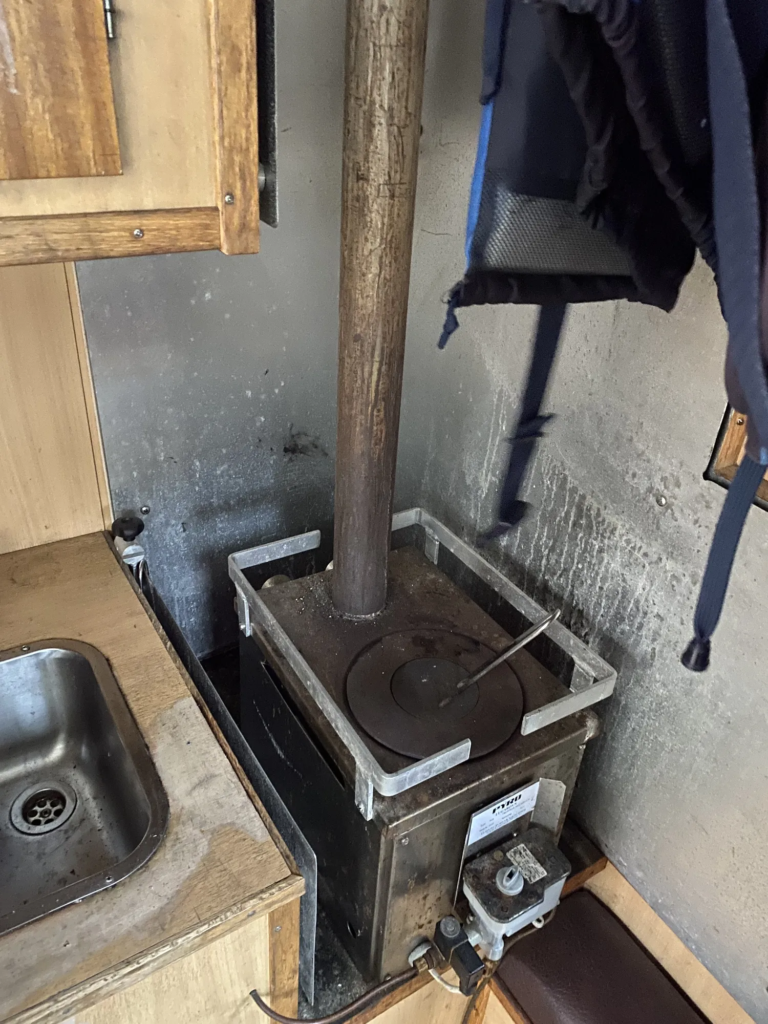 Beskrivelse Innredning: 2 benker, vask, stekeovn