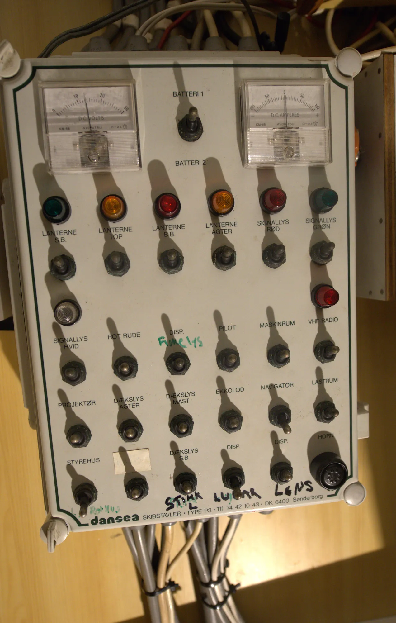 Annet: En 230V stikk inne i lugar kobla til landstrøm og en konvertor