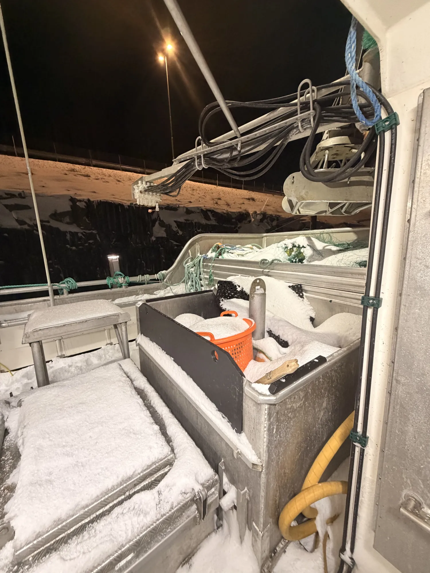 Renne system i lasterom for å få fisk i konteinerne. 18 stk.