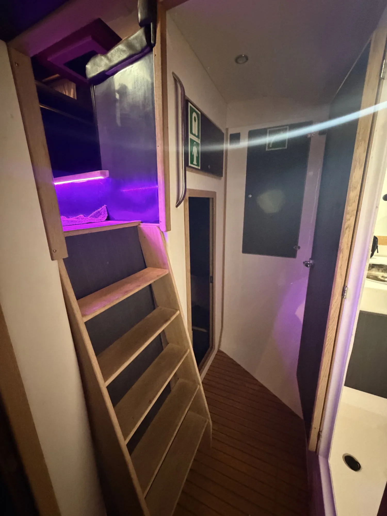 Lugarer/køyer: 2 stk enkelmanns lugar med tv skjerm på hver lugar