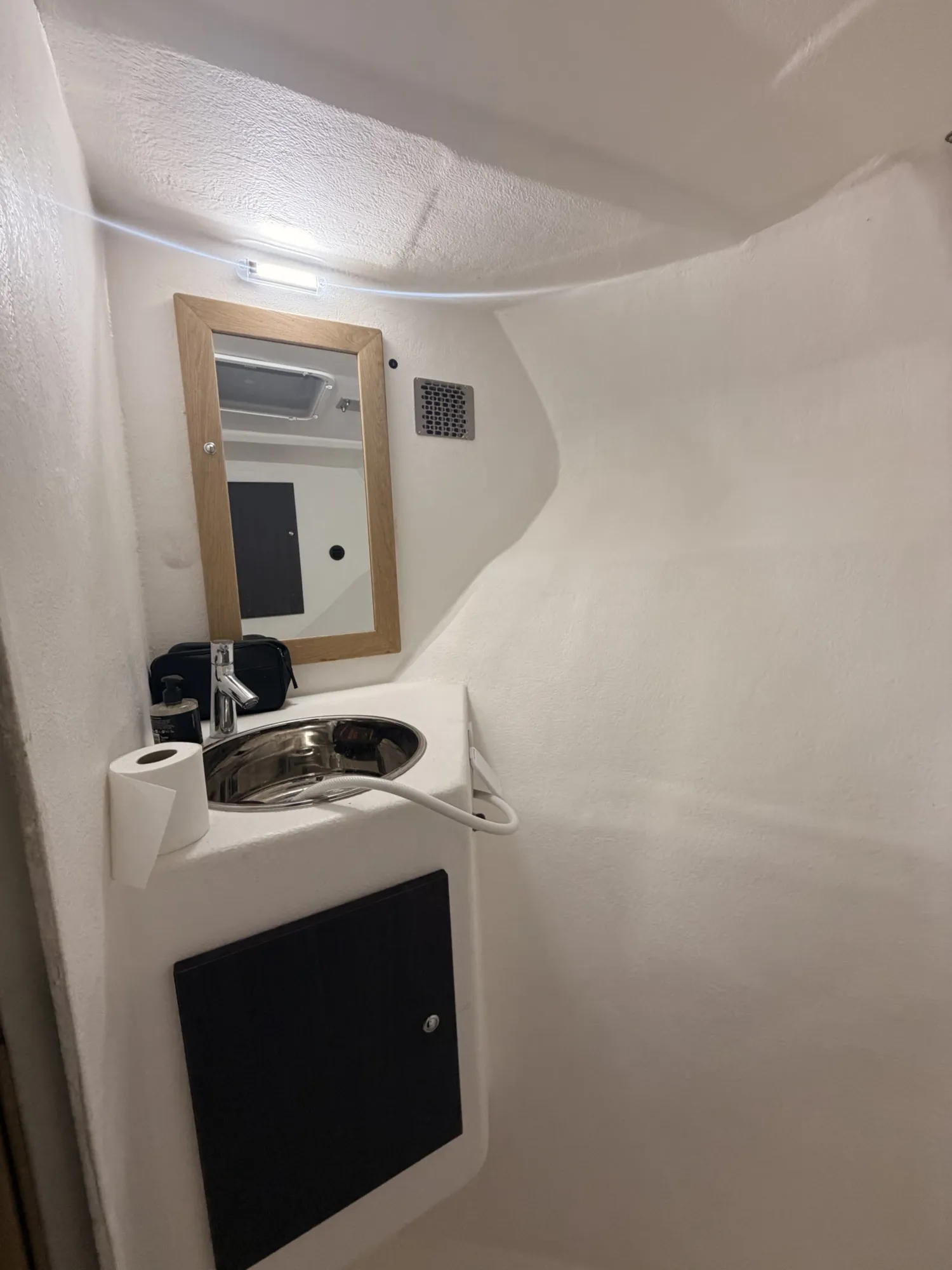 Stort og oversiktlig styrhus med egen gang og adkomst via dør til hver lugar samt WC. Rikelig med lagringsplass i skap og hyller.