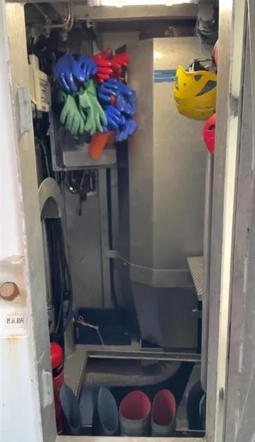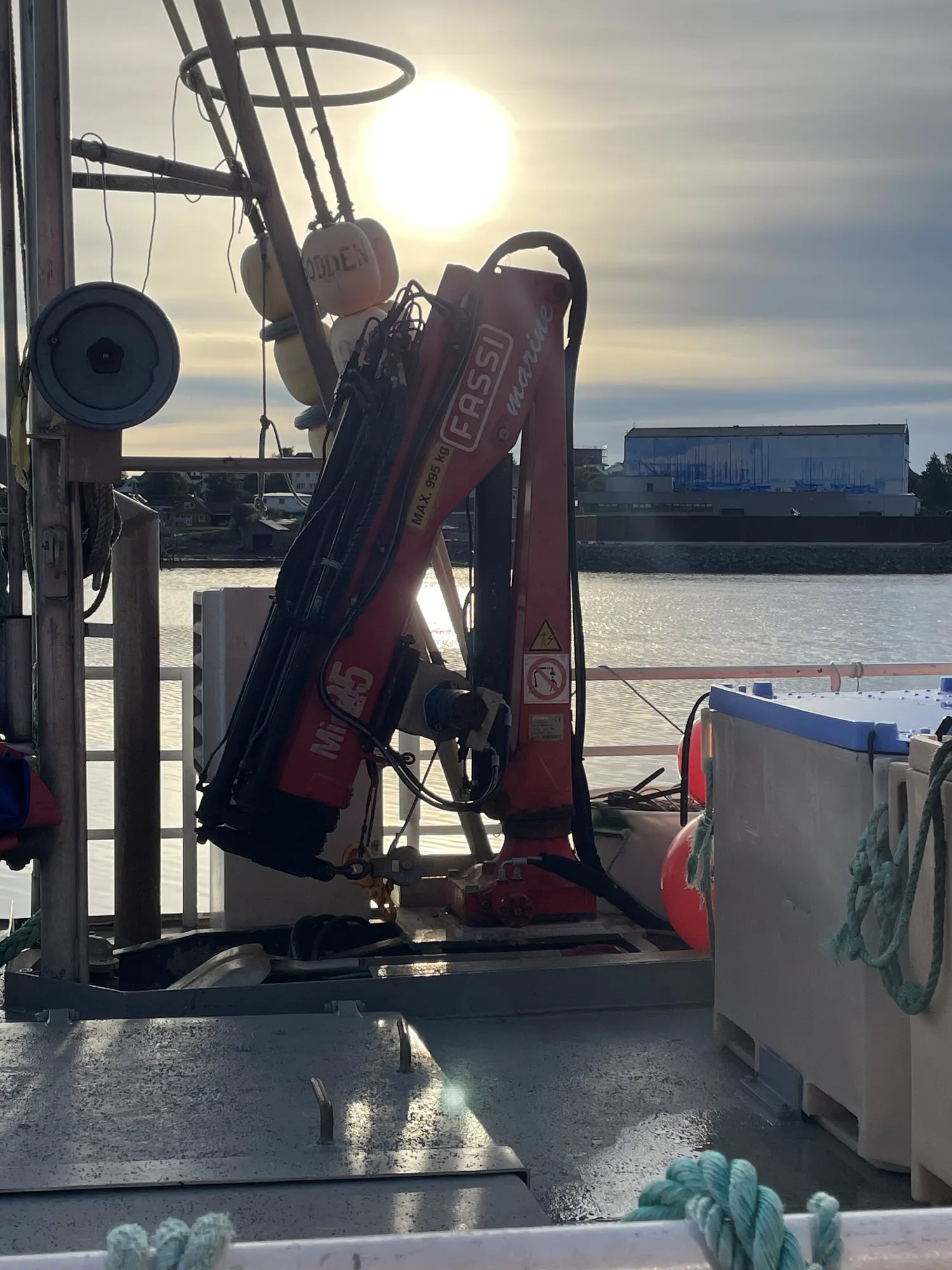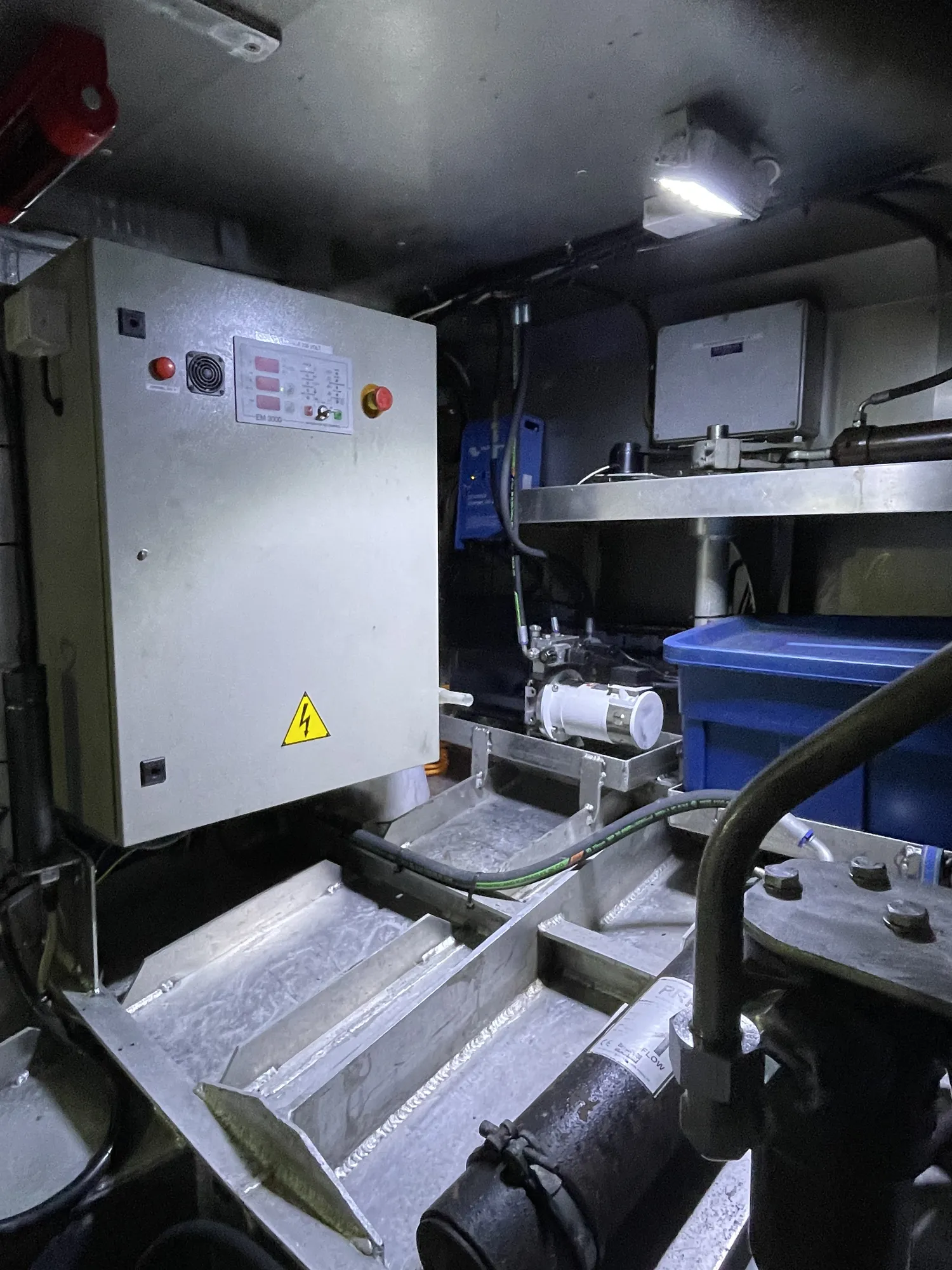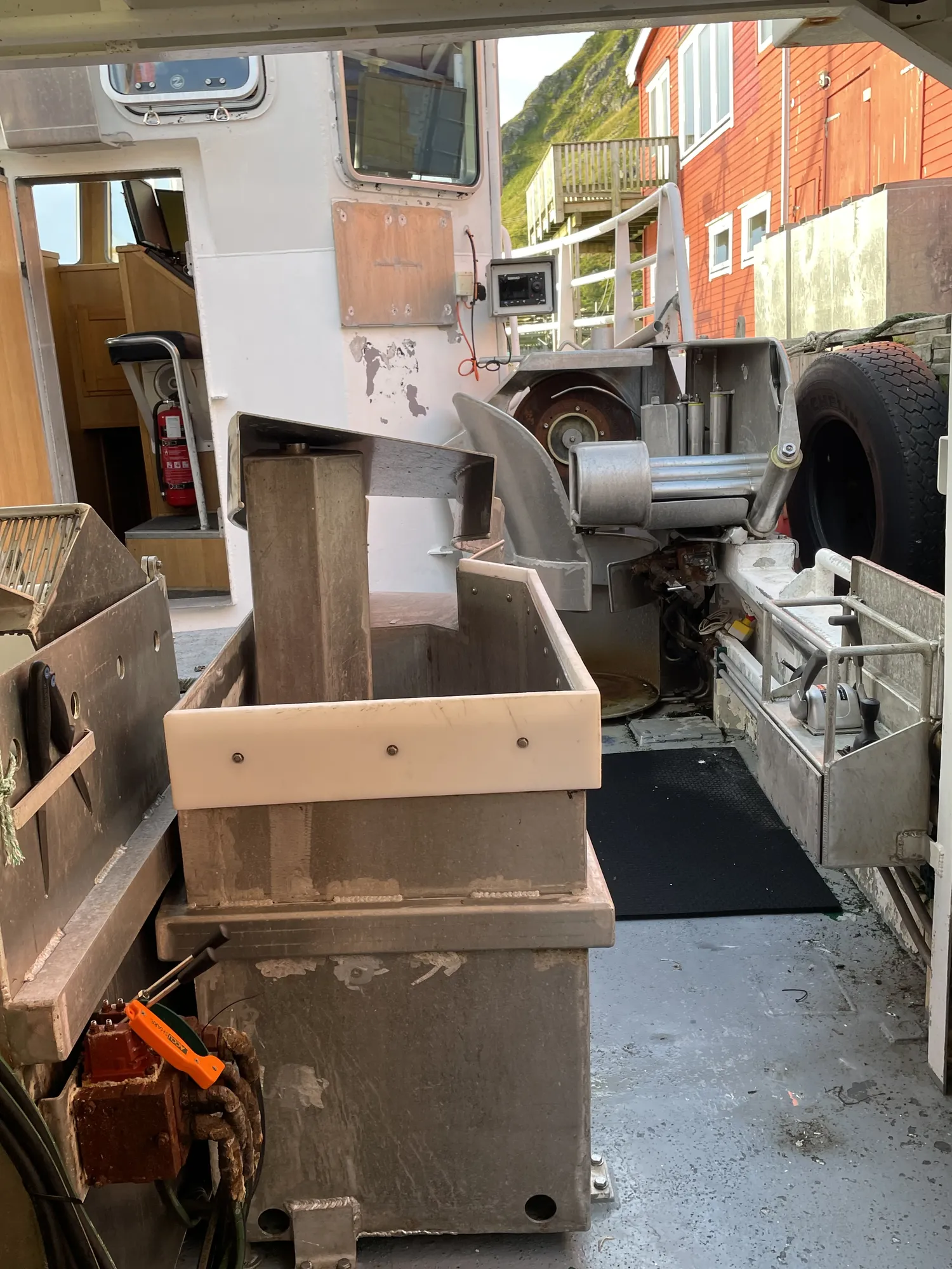 Aluminiums kontainere: 8 store + 6 små i rommet. Ca 7 tonn hvitfisk