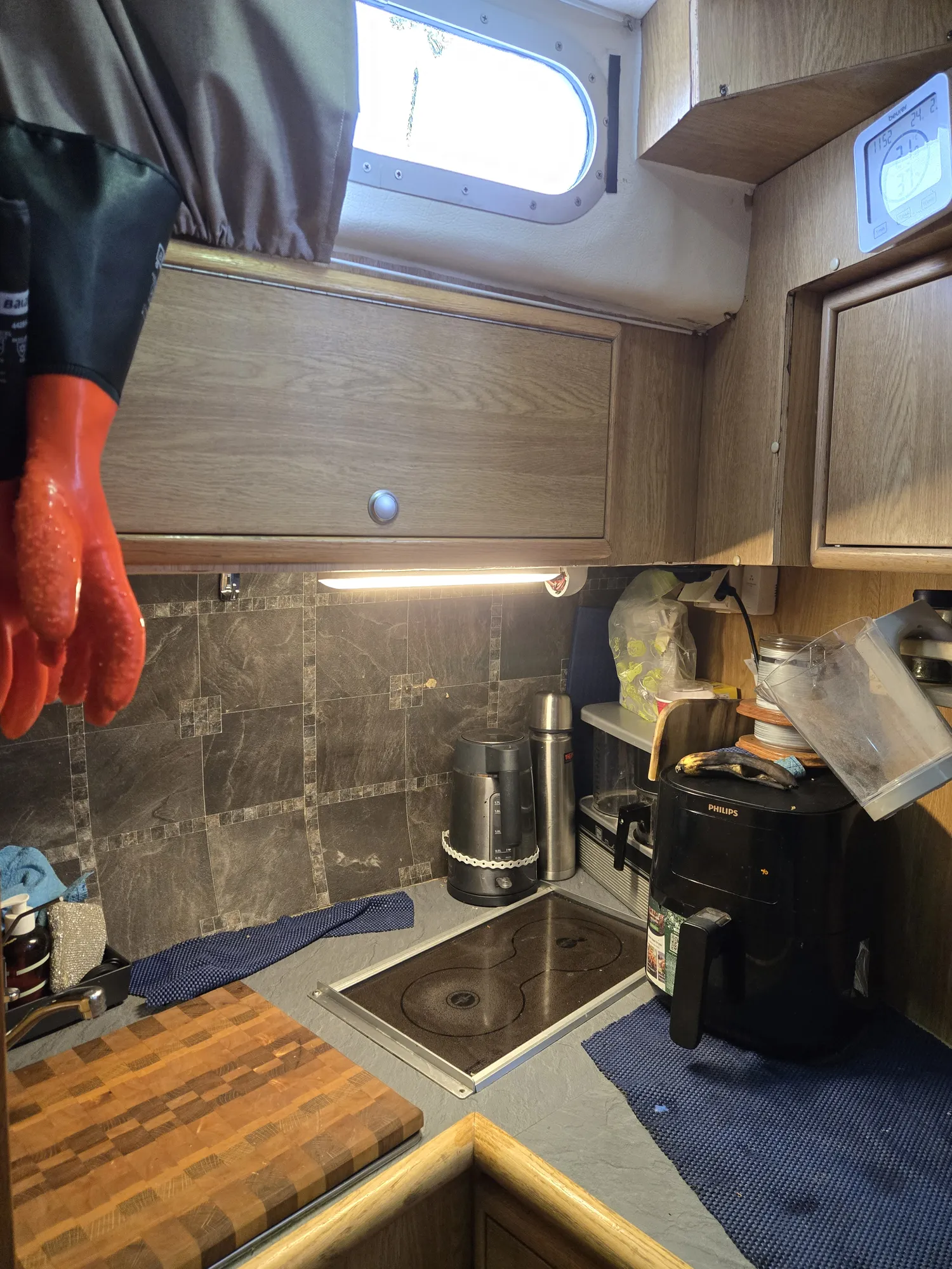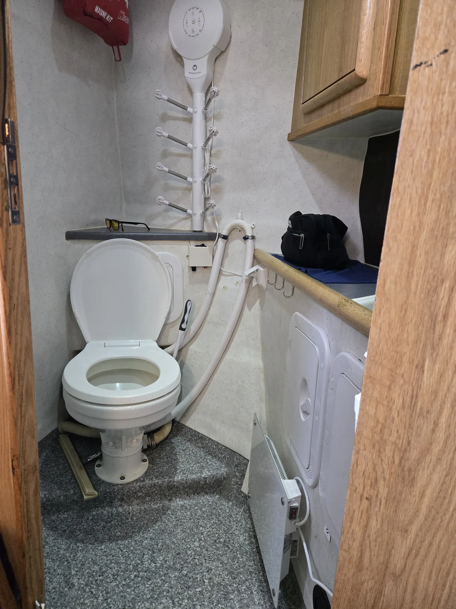 Oppvarming: Elektriske ovner, defroster på kjølevann, Wallas dieselvarmer, elektrisk varmtvannstank