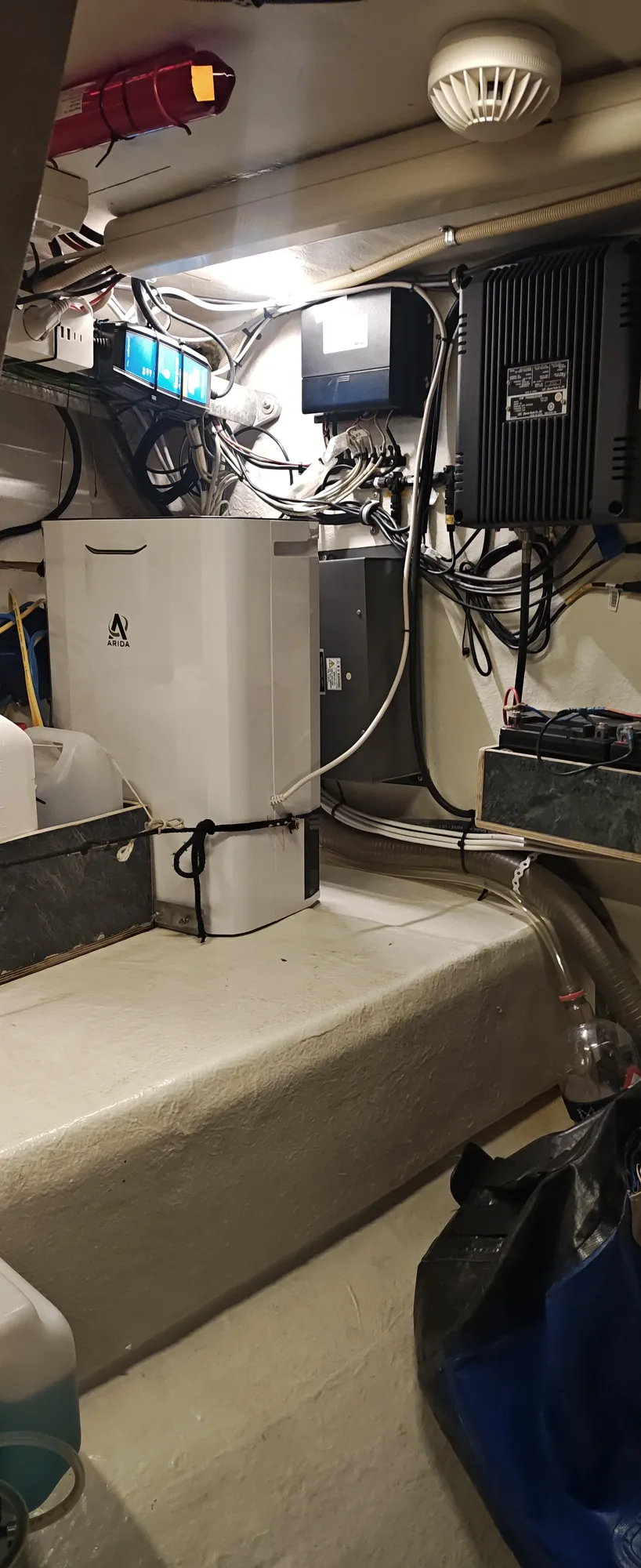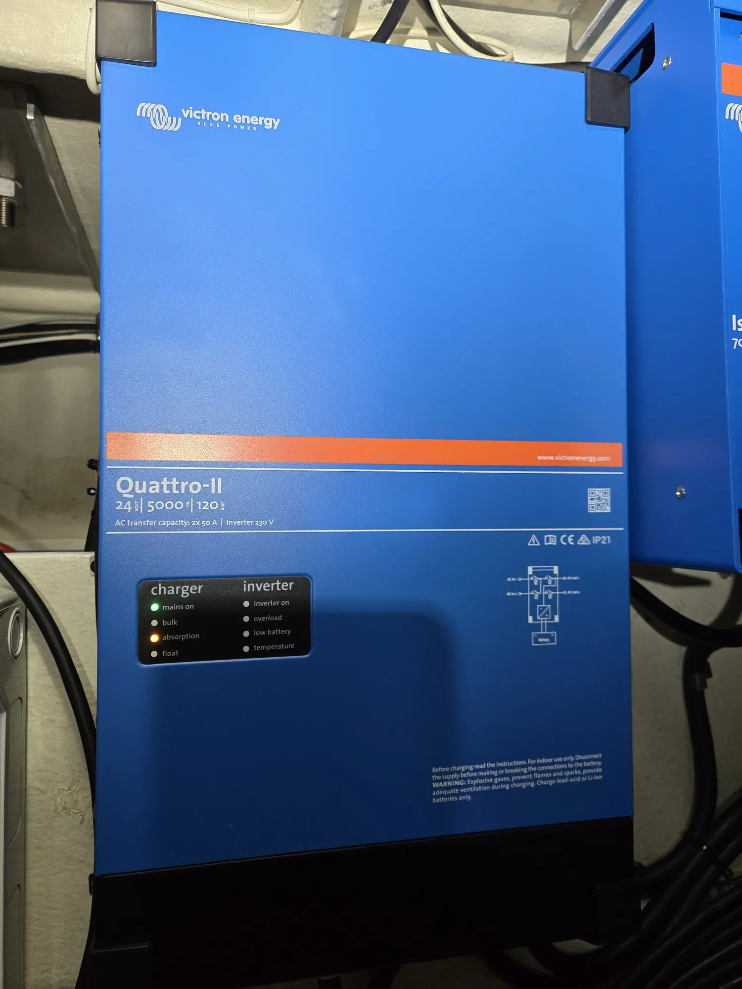Oppgraderinger 2025: Victron skilletrafo, Victron Quattro 5Kw inverter, ny 230V fordeling, 2x300Ah Lithium batterier, nytt 32A landstrømsinntak